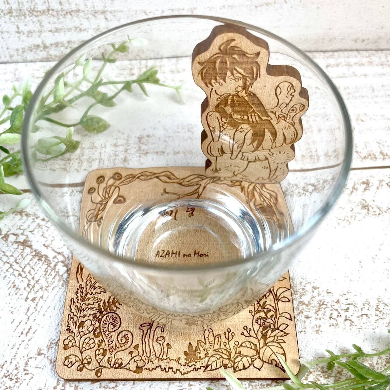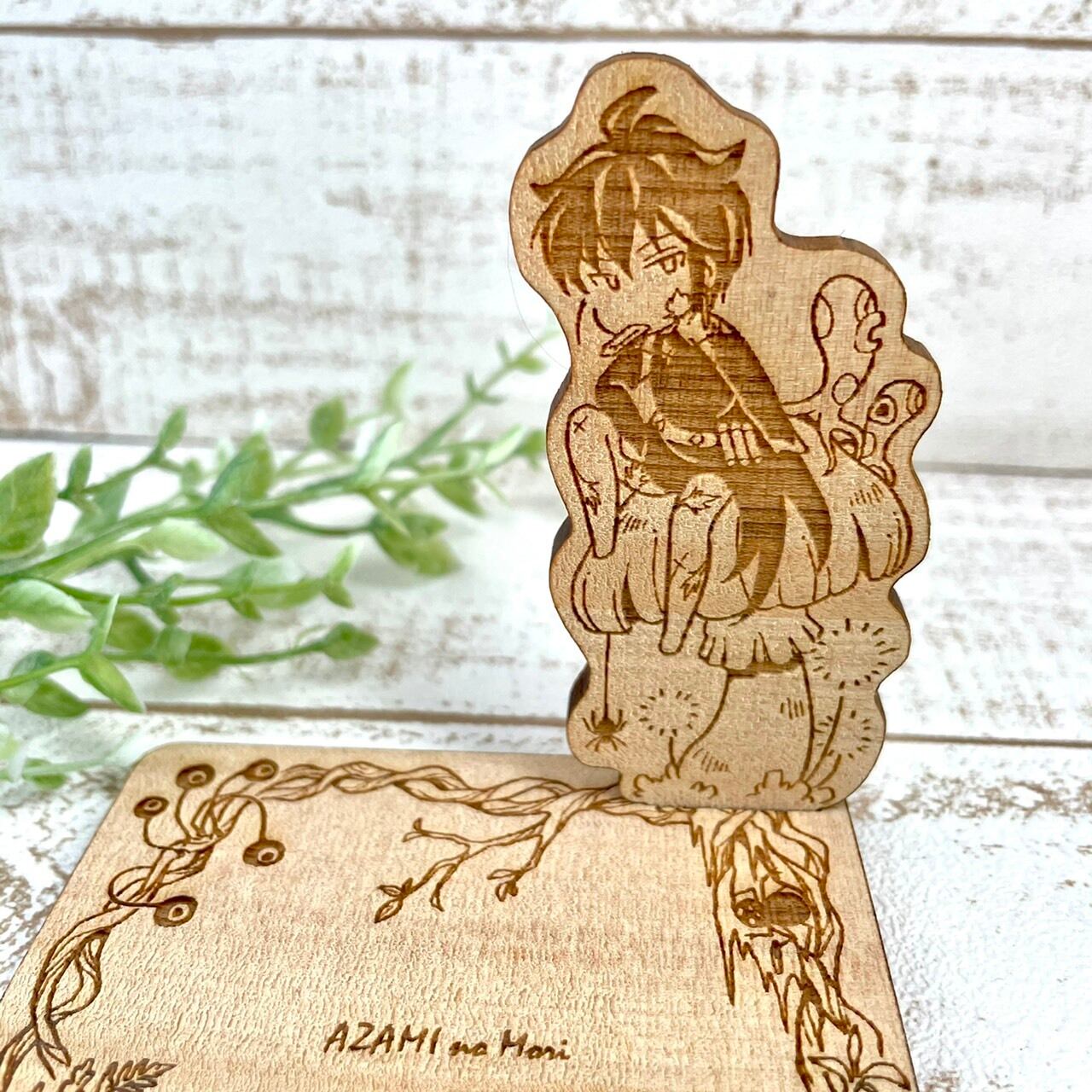 天然無垢のアガチス材に、レーザー加工でイラストを焼き込んだ